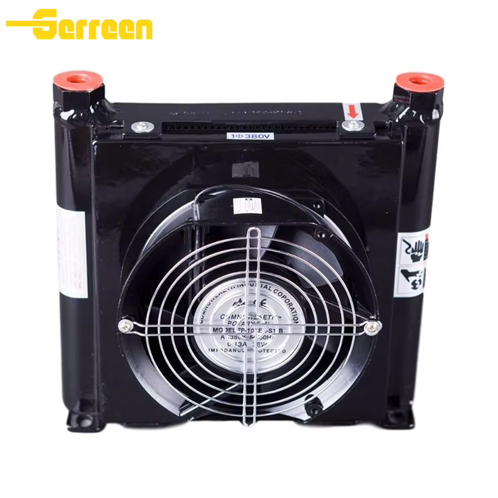 The AF1025T-25L hydraulic oil cooler is an air-cooled plate-fin heat exchanger with a flow rate of 25L/min, designed to maintain optimal oil temperatures in various industrial and mobile machinery applications.